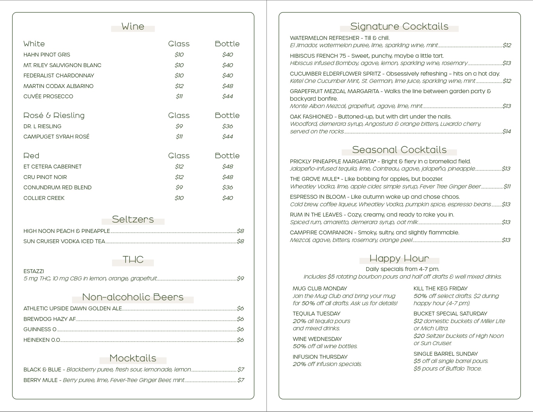 $2 off Well Liquors with a Mixer, Wine by the Glass, Cocktails*, and Mocktails